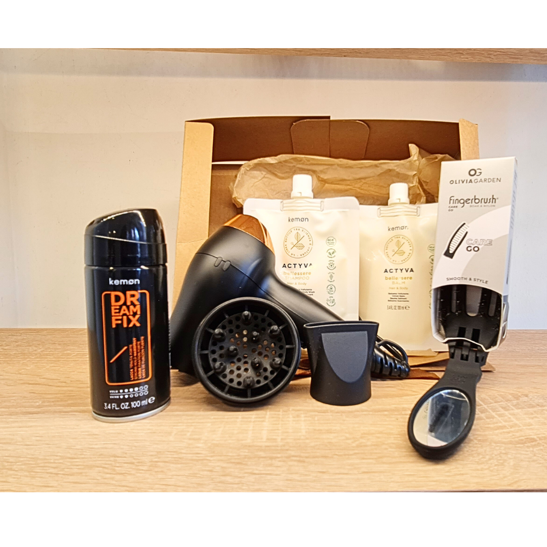 Incluye un cepillo plegable Olivia Garden con espejito, ideal para llevar en el bolso o neceser y retocar tu melena en cualquier momento. Lo acompaña una laca profesional de fijación firme, perfecta para mantener tus peinados bajo control incluso en días largos o con humedad 💨✨.